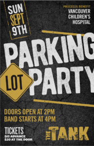 There are 200 tickets available for this feel good party on September 9th! Purchase tickets in person at The Coppertank (3162 W. Broadway) and make sure you get in quick before they’re gone. Tickets are $20 each on the day or $15 if you purchase before the event date. Doors open at 2pm and live music with the ShinDiggers starts at 4pm. Hope to see you at the Tank or in the lot ?